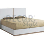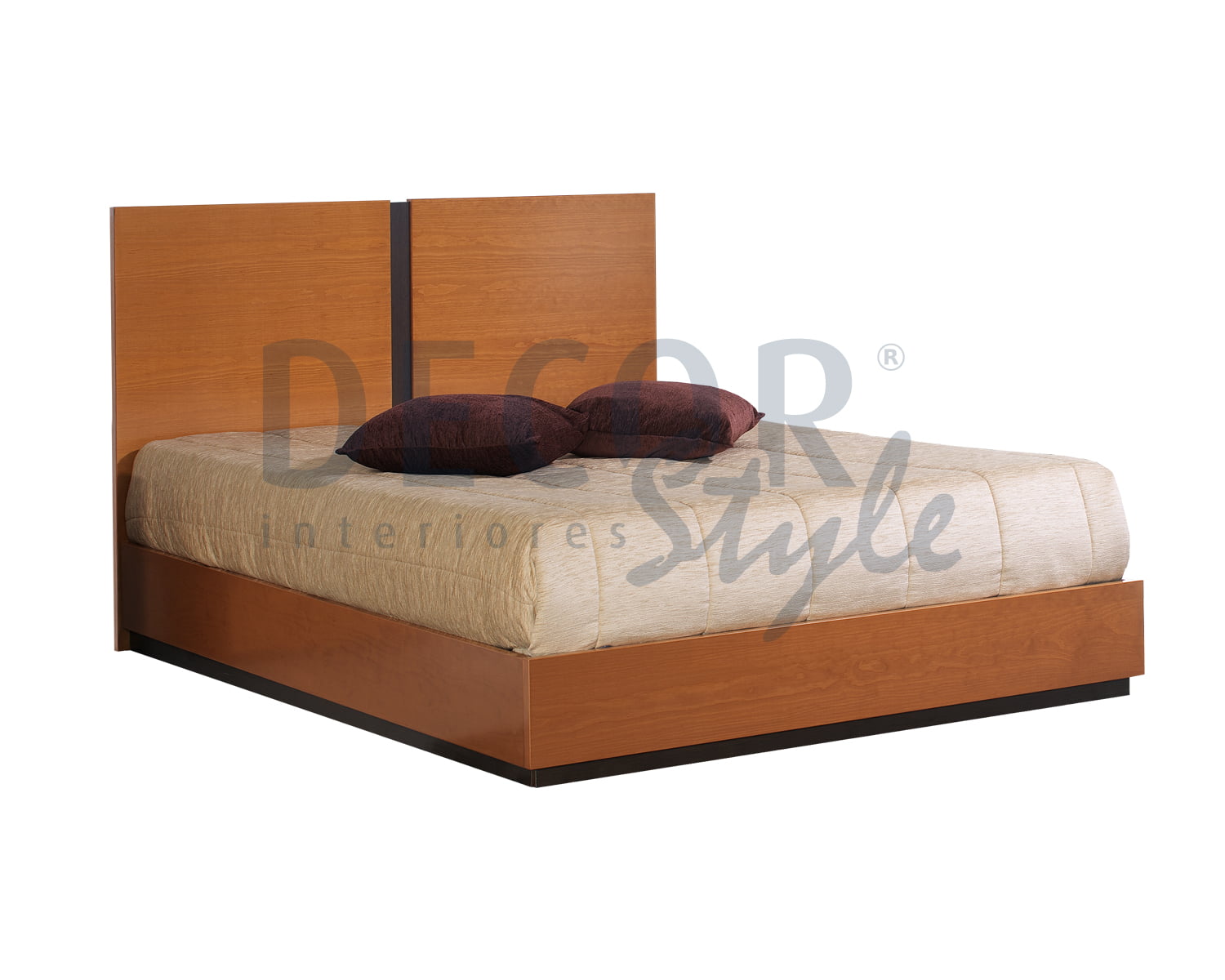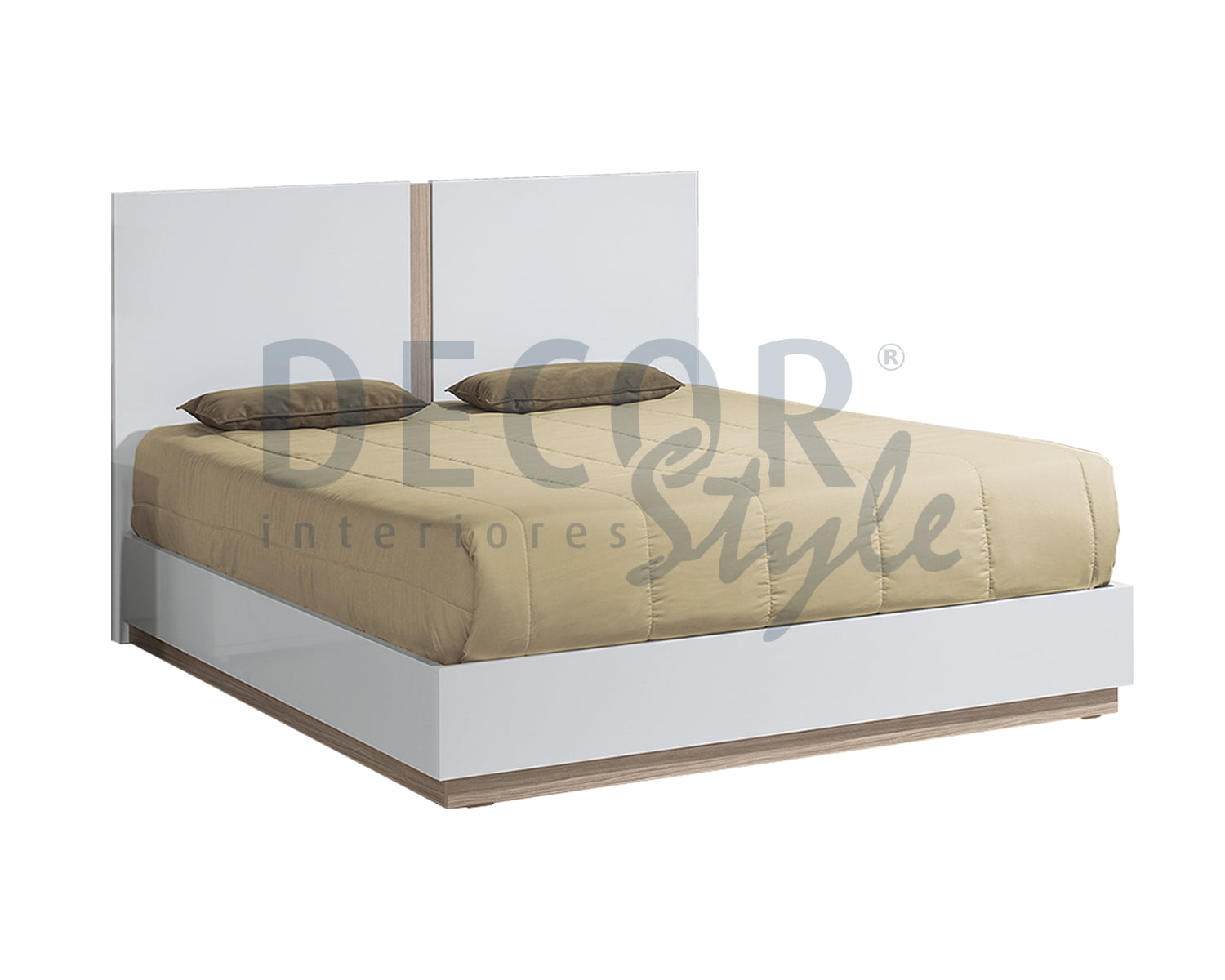 Cama de casal de linhas direitas onde predomina a simplicidade do branco reforçada pelo destaque na cabeceira de uma pequena faixa central em cor de carvalho ou onde predominam a sobriedade e elegância do pinho mel reforçadas pelo destaque na cabeceira de uma pequena faixa central em tom wengué. A peça ideal para criar no quarto um ambiente exclusivo. Inclui estrado.