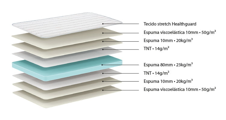 Revestido com tecido antialérgico stretch Health-Guard, garante a proteção contra fungos, bactérias e ácaros, para um colchão sempre fresco e livre de odores.