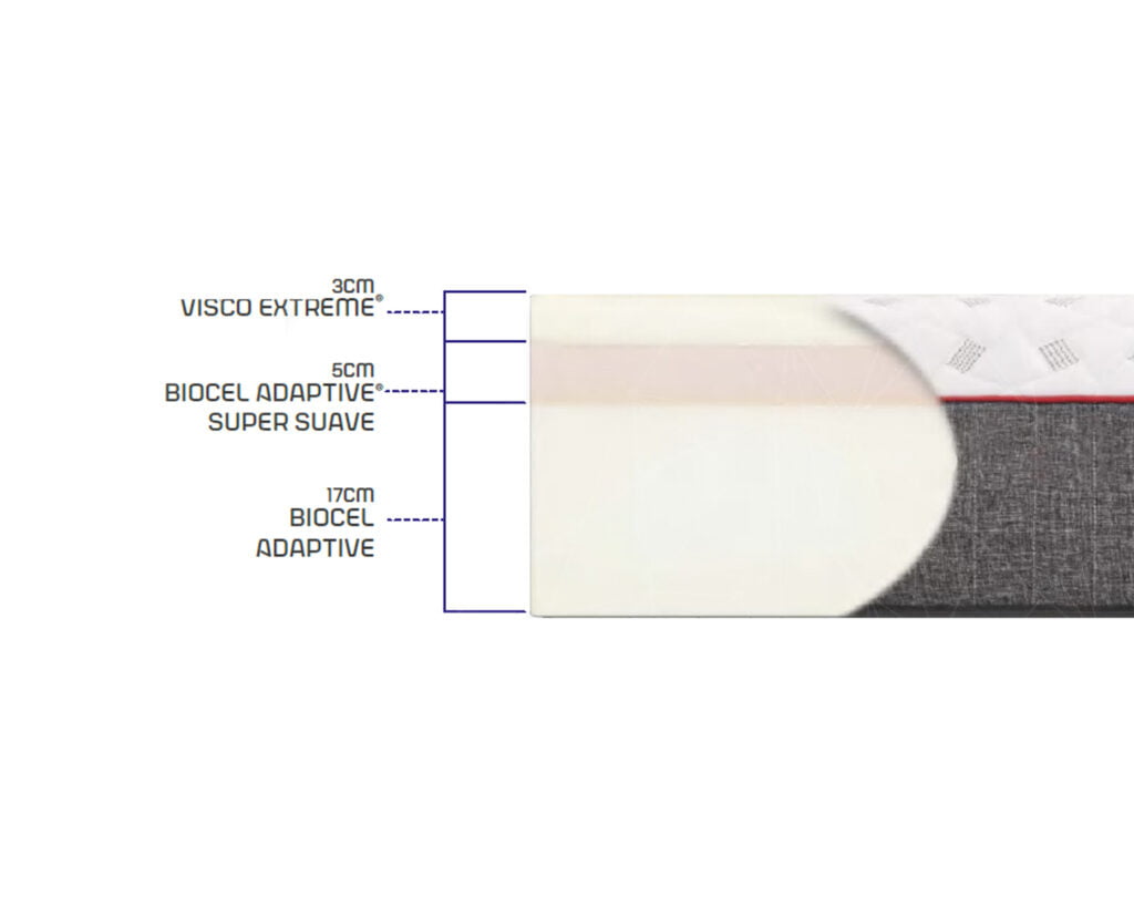 Perfeita combinação de matérias primas premuim que distribuem o suporte uniformemente de forma a eliminar os pontos de pressão.