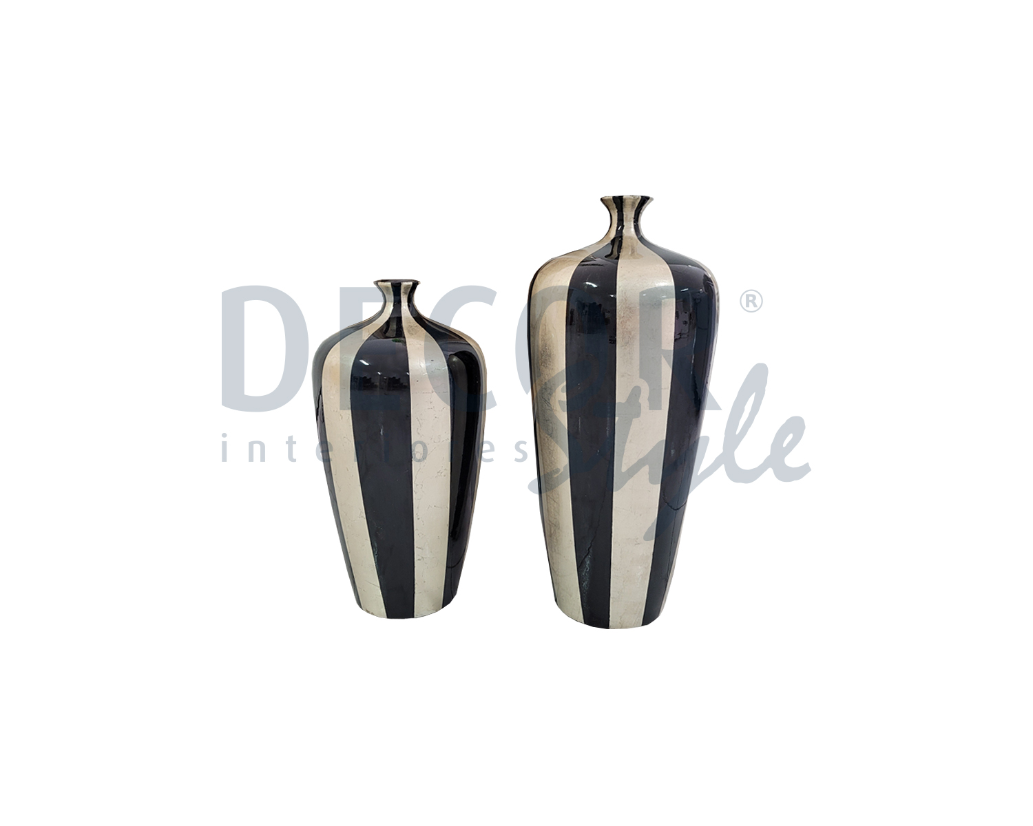 O conjunto Jarras Clássicas é composto por duas peças decorativas elegantes que proporcionam um efeito visual dinâmico, oferecendo um requinte inigualável. Apresentam um padrão de listras perfeitamente definidas, pretas e douradas, que criam um visual impactante. Seja para adornar a mesa de centro da sala de estar, decorar o quarto, ou ainda servir como peça centro de um evento especial, este conjunto exala sofisticação e eleva a estética do ambiente.