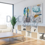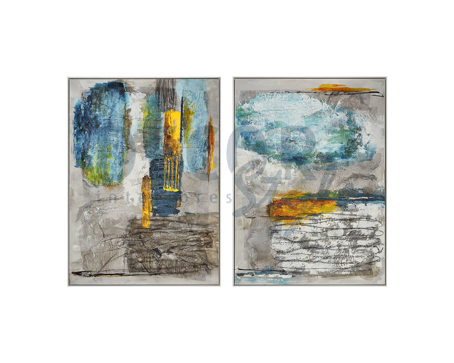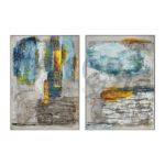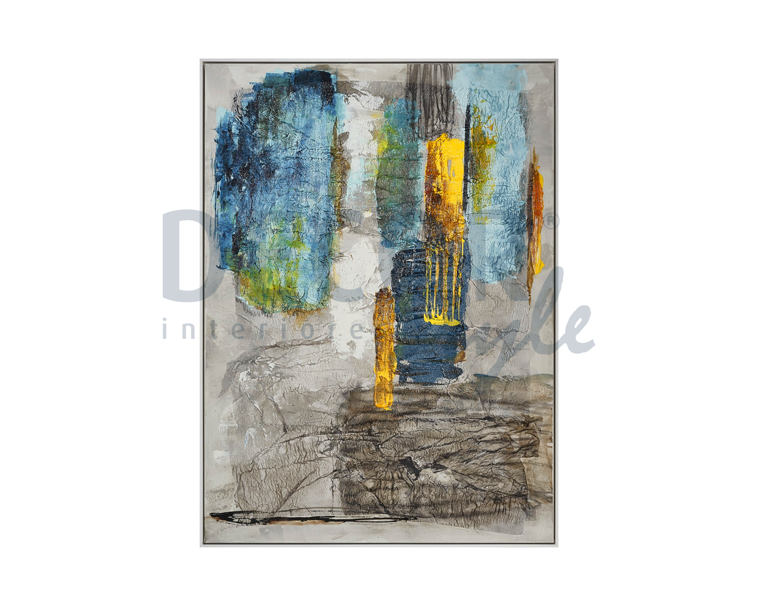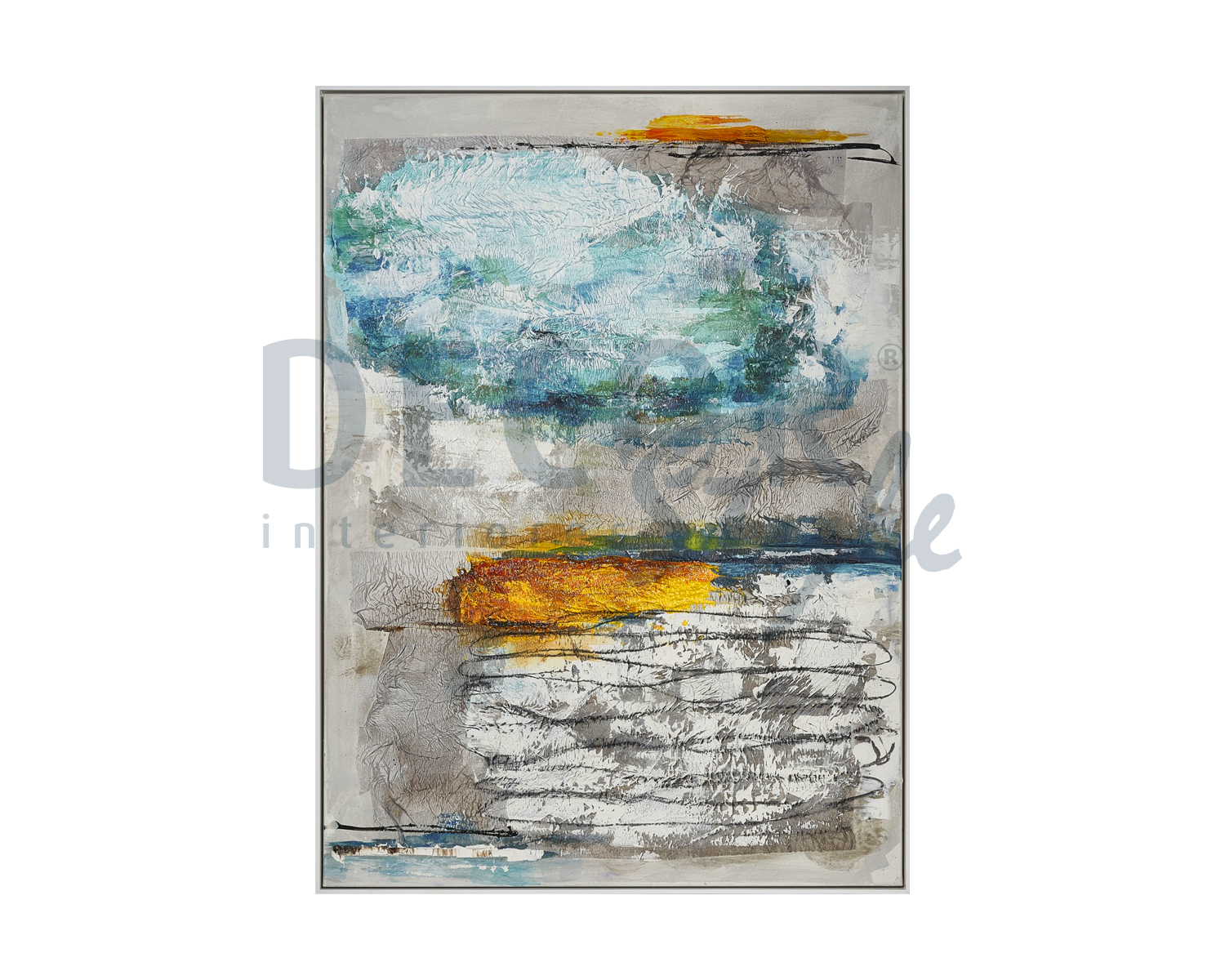 Os quadros abstratos Arona são peças únicas e inspiradoras que exibem uma combinação harmoniosa de cores e texturas. Apresentam imagens abstratas e contemporâneas, com uma composição vibrante e texturizada, não se tratando apenas de obras de arte decorativas, mas expressões artísticas que elevam o espaço onde se inserem; as suas nuances convidam à contemplação, proporcionando uma sensação de tranquilidade e reflexão. Pintados com uma mistura de técnicas em tela, num suporte L branco.
