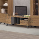 A sala de estar Baghdad é o espaço onde a simplicidade alia-se com a elegância, as linhas direitas e simples criam um ambiente de design moderno, enriquecido pela influência industrial. Os detalhes em cinza escuro adicionam profundidade visual, enquanto a predominância dos tons de carvalho gold ou carvalho branco confere uma atmosfera acolhedora e contemporânea. A linha Baghdad destaca-se pelos altos pés de design elegante, que adicionam um toque de sofisticação e leveza ao conjunto.