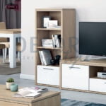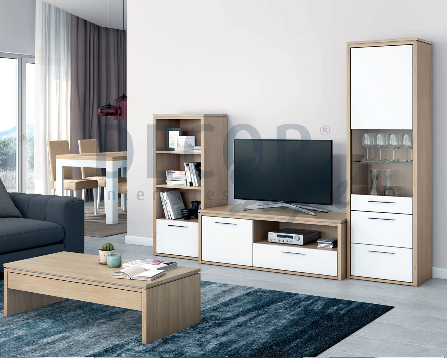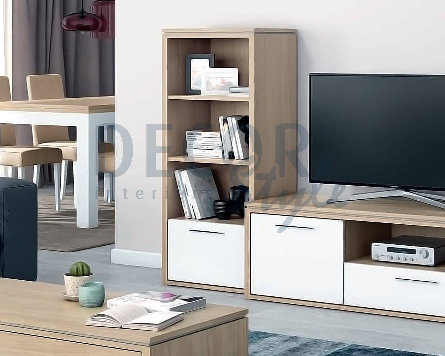 A sala de estar Rossio é um refúgio de modernidade e simplicidade que combina perfeitamente o estilo contemporâneo com o minimalismo. De linhas limpas e com uma estética descomplicada, é a escolha ideal para quem procura uma decoração elegante e funcional. Apresenta um predominância do carvalho cinza ou carvalho natural, adicionando uma sensação de calor e aconchego ao ambiente, enquanto que os detalhes em branco oferecem um contraste subtil e um toque de frescura.